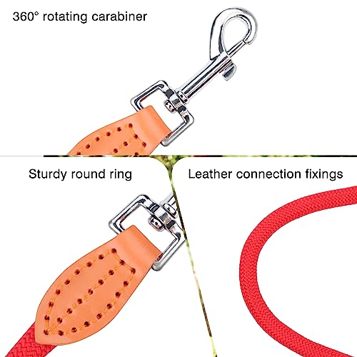 QUALITÀ DUREVOLE: il guinzaglio per cani è dotato di una stabile corda di nylon (a trama fitta) e di robusti collegamenti in pelle. Leggero e di piccole dimensioni. Buona resistenza allo strappo e stabilità. Potrete accompagnare il vostro cane in tutta sicurezza ed evitare che si perda.