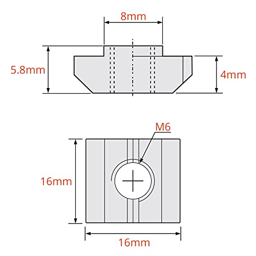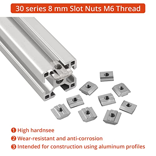 GETLITOOL 100 Pezzi Dadi Scorrevoli a T 8 Scanalature Serie EU3030 Standard Europei M6 Dadi per Profilo Alluminio