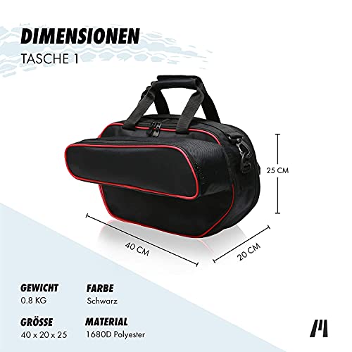appositamente progettato per le summenzionate custodie laterali DUCATI Multistrada 950, 1200 e 1260 - dimensioni - lunghezza: 40 cm, altezza: 25 cm, profondità (senza borsa esterne): 20 cm