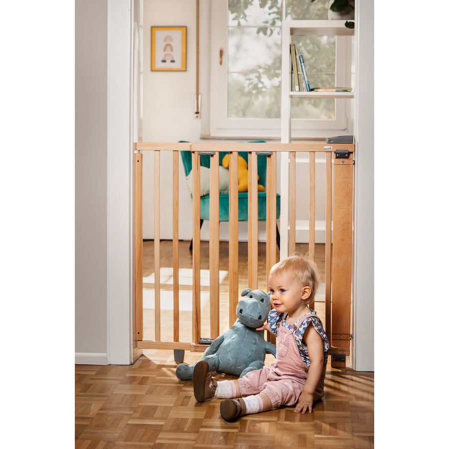 Dettagli del prodotto: Sicuro, confortevole e personalizzabile in modo flessibile Elevati standard di sicurezza e qualità Facile da usare e da installare I punti di forza in sintesi: Installazione in un'apertura di passaggio o a parete Ferramenta di bloccaggio per una facile regolazione della larghezza Design extra-alto di 83 cm Accesso senza barriere e senza rischi di inciampo Serratura di sicurezza azionabile con una sola mano L'arresto impedisce l'apertura nella zona di pericolo Distanza minima tra i pioli di 5,4 cm Adatto anche agli animali domestici Montaggio rapido, materiale di montaggio incluso Materiale e cura: Legno di faggio massiccio Tutte le vernici e i colori utilizzati sono resistenti alla saliva e al sudore Dimensioni e peso: Lunghezza: 57,5 cm Larghezza: 5,8 cm Altezza: 82,5 cm Peso: 4,52 kg