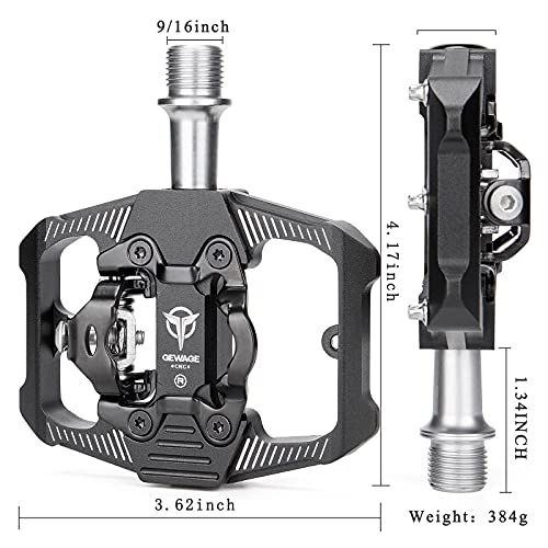 GEWAGE Pedali per bicicletta SPD, pedali per mountain bike, doppio lato SPD, piattaforma antiscivolo, con 3 cuscinetti, pedali in alluminio leggero, 9/16", con inserti per MTB, bici da strada (Nero)