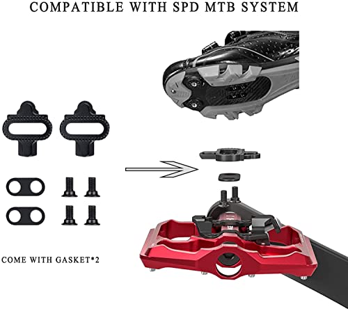 【PEDALE DELLA BICICLETTA A DUE LATI】 - I pedali automatici multiuso offrono al ciclista la possibilità di utilizzare scarpe senza clip per il lato clip-in (fornito con guarnizione SPD * 2) o scarpe casual per il lato piatto del pedale. Questo pedale misura 7,09 x 5,12 x 2,36 pollici e pesa solo 1,28 libbre, il che lo rende un'opzione a corpo largo ma leggera molto popolare tra i pendolari e i ciclisti di ghiaia, così come i mountain biker.