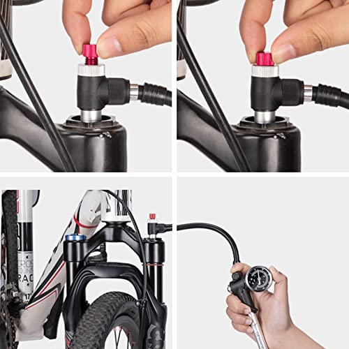 【Manometro di precisione da 300 PSI】: Le pompe per serrande MTB sono dotate di manometri industriali da 1,5 pollici di facile lettura con indicatore di PSI e bar. Un pulsante di spurgo per la regolazione fine assicura che il ciclista possa regolare la pressione dell'aria dell'ammortizzatore o della forcella esattamente in base al peso del ciclista.