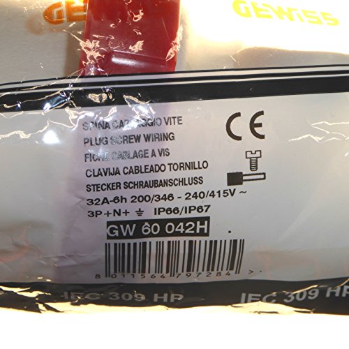 Gewiss Spina Mobile Diritta Hp, IP66/IP67/IP68/IP69, 3P+N+T 32A 380-415V 50/60Hz, Rosso, 6H, Cablaggio a Vite