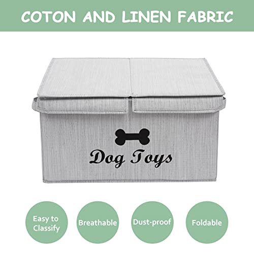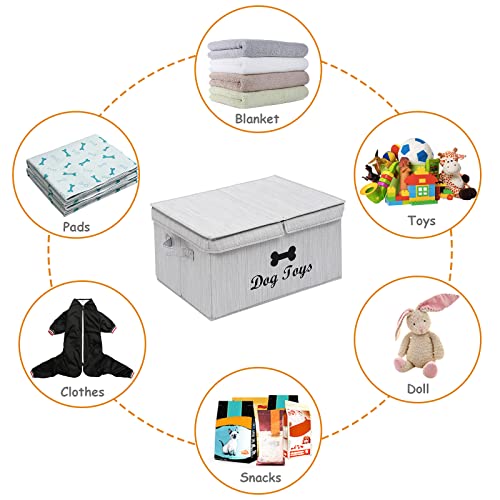 Geyecete - Grande Scatola portaoggetti in Tessuto di Lino, Pieghevole, con Coperchio, con Scomparto e Maniglie per Giocattoli per Cani, Abbigliamento per Cane -42 x 31 x 22cm-Grigio