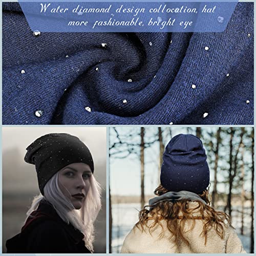 Geyoga 2 Pezzi Berretto Slouchy Cappello Largo Oversize Lungo con Strass Unisex