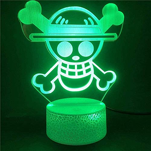 GEZHF ONE Piece Anime 3D Night Light Skull con telecomando 16 colori LED Touch Lamp Lampada da Camera da lettoe Lampada Regalo di Halloween per bambini
