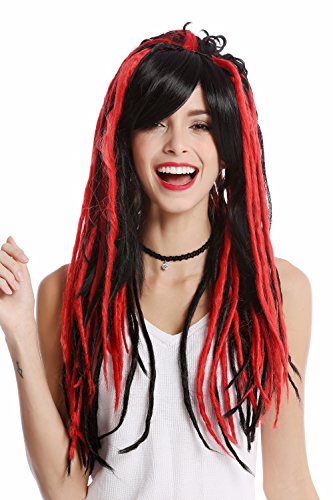 WIG ME UP - GF-W2416-1BHRED Parrucca Donna Cosplay Lunga Liscia Riga Nero Rosso Rasta Dreadlocks