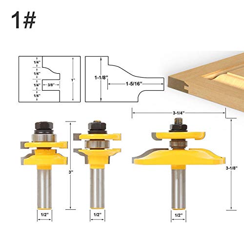 Gfpql WYanHua-Shank Bevel 1/2" Shank 12 Millimetri Shank Cutter Tenon Cutter, 3 Bit Pannello alzato Sportello dell'auto Router Bit Set, Accessori per Utensili Fai da Te