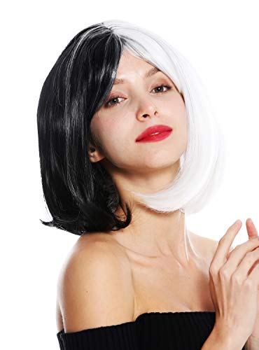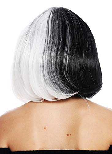 Eccentrica parrucca da donna per cosplay e per entrate in scena particolari. Il voluminoso bob liscio è diviso verticalmente in due metà di due diversi colori: un lato bianco e l'altro lato nero.