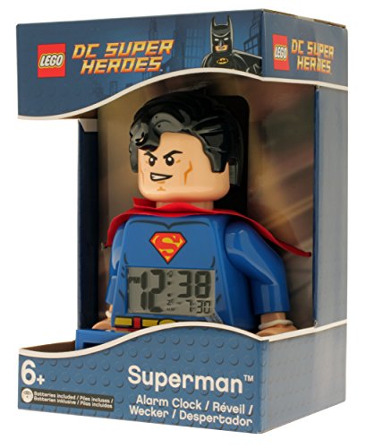 Minifigure gigante di Superman con mantello in tessuto e sveglia con display LCD digitale
