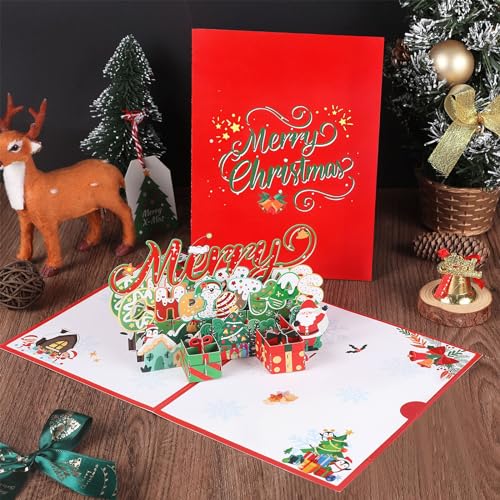 GGISUI Biglietto Auguri Natale 3D, Cartoline di Natale Pop-Up, Biglietti Auguri Natalizi con Busta per Regali di Natale