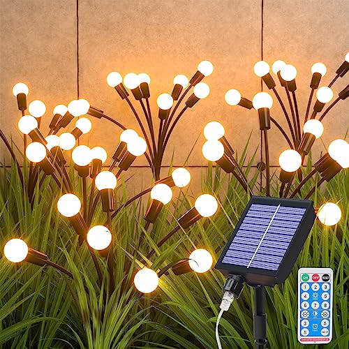 GGISUI Lampade Solari da Giardino, 4 in 1 Luci Lucciole Solari Esterno con Telecomando, Ricaricabili USB Luce Solare 32 Leds Esterno, 8 Luci Modello, Batteria da 1200 mAh