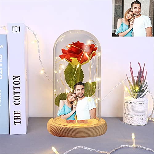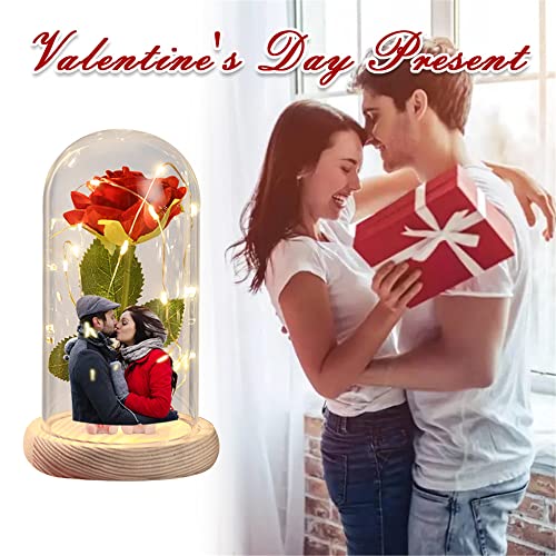 GGUIUIC Lampada a cupola in vetro con fiore rosa di cristallo con luce notturna personalizzata per San Valentino(rosso)