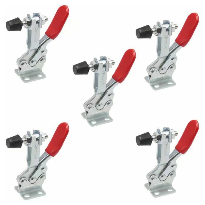 Confezione da 5 morsetti a levetta - La confezione contiene 5 morsetti orizzontali 201D antiscivolo. Lo strumento a sgancio rapido si installa facilmente su infissi, attrezzature per utensili, seghe da banco e perni mobili. Durevole e resistente: il morsetto a ginocchiera è realizzato in acciaio al carbonio laminato a freddo con un rivestimento galvanizzato per resistenza alla corrosione e all'usura. I pennini di stampa in gomma rossa sono regolabili, l'impugnatura in gomma è comoda da impugnare. 【Regolabile】 L'angolo del morsetto a leva può essere regolato secondo necessità, l'angolo di movimento può raggiungere i 60 gradi e può reggere 198 libbre. 【Capacità di tenuta】Il morsetto a ginocchiera può sostenere fino a 30 kg. Morsetto a leva 201B - Lunghezza totale: 145 mm - Altezza: 98 mm - Sono disponibili viti M6 (M6x50) per un bloccaggio rapido - Carico massimo: 90 kg. 【Ampio utilizzo】 Questi morsetti per ginocchio con impugnatura orizzontale sono progettati per e tenere senza sforzo