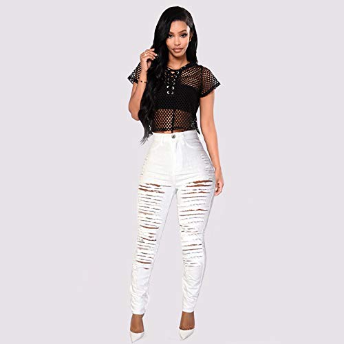 Ghemdilmn Jeans da donna skinny jeans con fori strappati, in tinta unita, a vita alta, slim fit, elasticizzati, elasticizzati, alla moda, boyfriend, bianco, XL