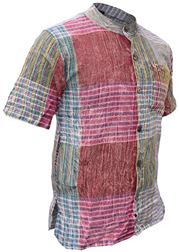 Gheri Uomo Bloccare Check Cotone Manica Corta Pulsante Completo Patchwork Estate Camicia