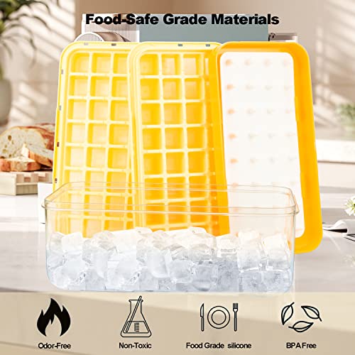 Ghiaccio Stampo in Alimentare, Stampo Ghiaccio con Coperchio, Rilascia Tutti i Cubetti Ghiaccio in un Secondo, senza BPA, 64 Stampi Ghiaccio (Giallo Ice Maker)