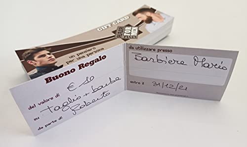GHIBLI Buoni Regalo Barbiere (da 50 a 250 pezzi) Buoni Omaggio Biglietti Pieghevoli Gift Card Barber Shop Coupon Voucher Barbieria Cartoncino Plastificato da Compilare Offerta o Sconto Clienti (100)