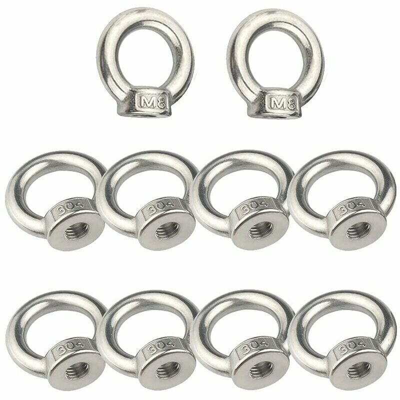 La confezione contiene 10 dadi a occhiello M8, sufficienti per soddisfare le esigenze quotidiane. I dadi a occhiello sono realizzati in acciaio inossidabile 304 di alta qualità, resistente alla corrosione e alla ruggine. Il diametro interno del dado è di circa 20 mm, il diametro esterno è di circa 36 mm, lo spessore è di circa 20 mm.39;
