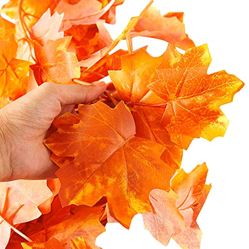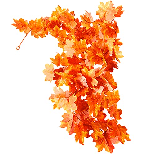 la ghirlanda per caminetti autunnali misura circa 180 cm con foglie arancioni per imitare foglie autunnali e ganci adesivi per consentire un facile posizionamento