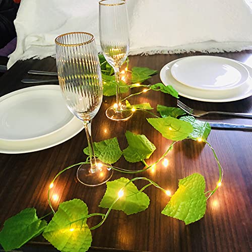 Ghirlanda di Edera Artificiale Foglia d'acero di Eucalipto Begonia Viti d'uva Piante Verdi Appese Piante di Vite di Anguria Finte con LED Luce di Stringa (Foglia d'uva verde, 1)
