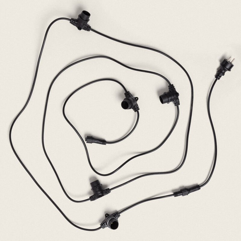 Questa Ghirlanda per Esterni con 5 Portalampade B22 5m Nero IP44 è un elemento molto utilizzato nell'illuminazione decorativa degli spazi esterni. La ghirlanda è dotata alle estremità di connettori che possono essere utilizzati sia per l'alimentazione che per unire ghirlande in serie. Questa ghirlanda ha 5 portalampade. Tra ciascuna delle lampadine c'è una lunghezza di 100 cm. La luminosità e lo stile finale della ghirlanda dipendono dalla lampadina utilizzata. In questo modo si apre un'ampia gamma di possibilità: ad esempio, possiamo utilizzare lampadine a filamento, che conferiscono un aspetto più vintage, oppure utilizzare una lampadina dall'aspetto più moderno. L'importante è scegliere la lampadina che illumini e decori adeguatamente lo spazio, tenendo conto delle sue esigenze. Utilizza lampadine B22 NON INCLUSE nel prodotto . SCHEDA TECNICA: Dimensioni: 50 mm x 45 mm x 5000 mm Durata: 30.000 Ore Protezione IP: IP44 Uso: Esterno Tensione di Alimentazione: Certificati: RoHS, CE