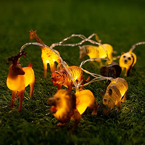 Ghirlanda luminosa con animali: questa lampada di decorazione per vacanze ha forme animali vibranti e carine come la giraffa, il lealfo, il rinoceronte, la tigre, il leone, il panda, lo zebra, ecc. che attirano facilmente latenza e faranno brillare i bambini.