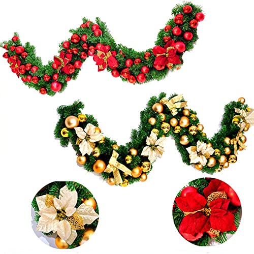 Ghirlanda di Natale, Queta Ghirlanda di Decorazioni Natalizie in Rattan, a Prova di Muffa e Permanente, 2,7 m (Gold)