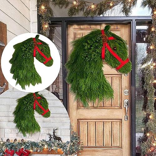 【GHIERE PERFETTAMENTE DECORATE】 Questa ghirlanda a forma di testa di cavallo da esterno aggiungerà energia extra e un senso della natura alla tua casa e può essere facilmente appesa su un divano o caminetto per un'atmosfera festosa e festosa per tutta la famiglia.