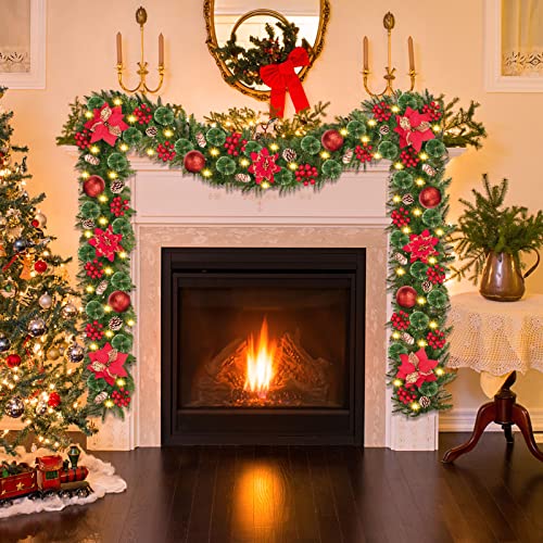 Ghirlanda Natalizia, KOOFIT 2.7M/9 Piedi Ghirlanda Natalizia per Esterno, Ghirlanda di Natale con Luci 30LEDs, Ghirlanda Natale Lunghe Decorazioni Artificiale per Scale, Porta, Camini