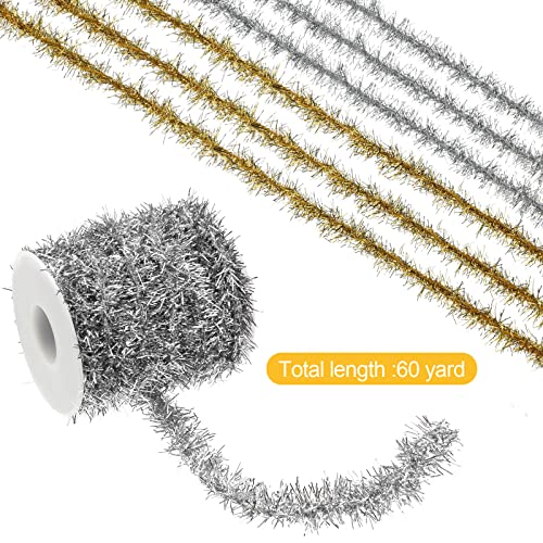 50M Ghirlanda di Orpelli di Natale Ghirlanda di Natale con Glitter Colorati Ghirlanda di Tinsel Metallica Sottile Nastro con Filo di Orpelli (Colore AB Bianco) (Oro, Argento)