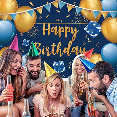 【Decorazioni di compleanno con palloncini in oro blu】: palloncini blu navy 15 * 10 pollici, palloncini blu navy 5 * 5 pollici, palloncini oro metallizzato 10 * 10 pollici, palloncini oro metallizzato 5 * 5 pollici, palloncini coriandoli dorati 7 * 12 pollici, 100 * Banner di buon compleanno in oro blu da 150 cm, cordino per palloncini e punti di colla.