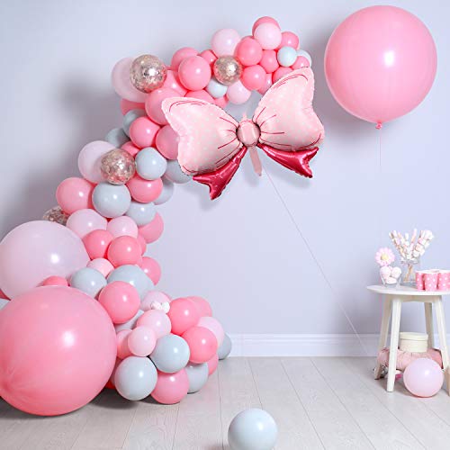 Design a tema rosa: la maggior parte delle ragazze adorerà questo colore rosa, progettato con palloncini in lamina di prua, rosa rossa e rosa, e il palloncino in lamina con fiocco rosa è simile al colore del topo dei cartoni animati, sembra molto carino;