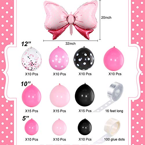 119 Kit di Arco Ghirlanda di Palloncini di Topo Include Palloncini Foil con Fiocco Rosa Palloncini Lattice Rosa con Puntini Neri Rosso con Striscia di Palloncino e Punti di Colla per Feste