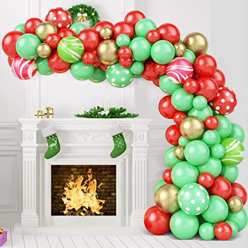 Ghirlanda Palloncini Natale, Rosso Verde Oro Arco Palloncini Natale, 84 Pezzi Agata Palloncini in Lattice per Dentro Fuori Festa di Natale Orario Invernale Vacanza Capodanno Decorazioni di Compleanno