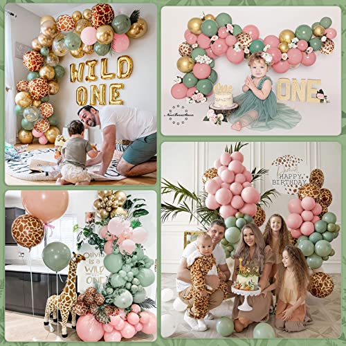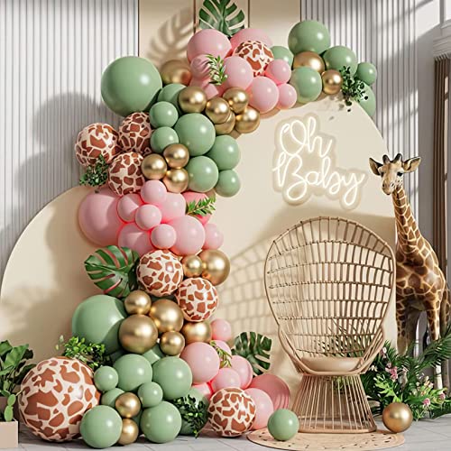 Perfetto per ogni occasione: set di ghirlande Saga Green Balloon Combinazione di palloncini verdi retrò, palloncini rosa e palloncini in pellicola con stampa leopardata, sono perfetti per la decorazione di compleanno selvaggia per safari, feste di compleanno, baby shower, addio al celibato, festa di compleanno, anniversario, fidanzamento, proposta di laurea.