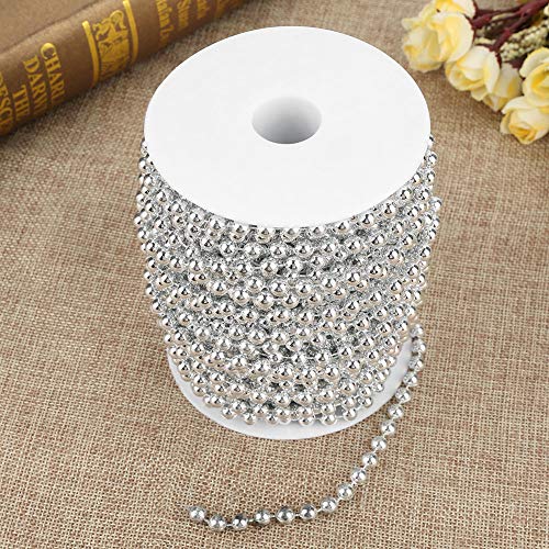 Ghirlanda di perline dell'albero di Natale, 25m/rotolo di perle galvaniche artificiali da 6 mm, finiture in perline di perle finte per Natale, matrimonio, vacanze, fai da te(D'argento)