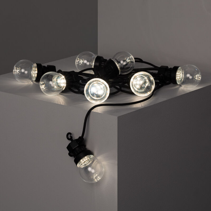 La Ghirlanda LED Solare per Esterni di Lampadine Kepler 7m è caricata con energia solare grazie al suo pannello solare. Il pannello solare può essere installato ovunque dove riceve la luce e comprende anche un picchetto che permette di installarlo come un segnapasso e regolare l'angolo del pannello solare per ricevere più luce. Caratteristiche della Ghirlanda LED Solare per Esterni di Lampadine Kepler 7mLa Ghirlanda LED Solare per Esterni di Lampadine Kepler 7m incorpora 8 lampadine separate 0,6 metri tra loro, con LED integrati a basso consumo e le cui palline possono essere cambiate e / o combinate con le palline per la Ghirlanda Multicolor 8 unità sul nostro negozio. La sua lunghezza totale è di 7,2 metri e a differenza della maggior parte delle ghirlande sul mercato, il cavo dalla ghirlanda fino al pannello solare misura 3 metri, ciò permette di installare il pannello solare in un luogo dove riceve abbastanza luce solare, senza essere molto limitato dalla lunghezza del cavo.