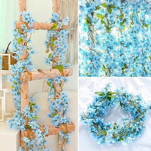 2 ghirlande di fiori artificiali di ciliegio, 1,8 m, ghirlanda di fiori artificiali, fiori di ciliegio, colore blu, fiori artificiali, ghirlanda di fiori di seta, da appendere per feste, pareti,