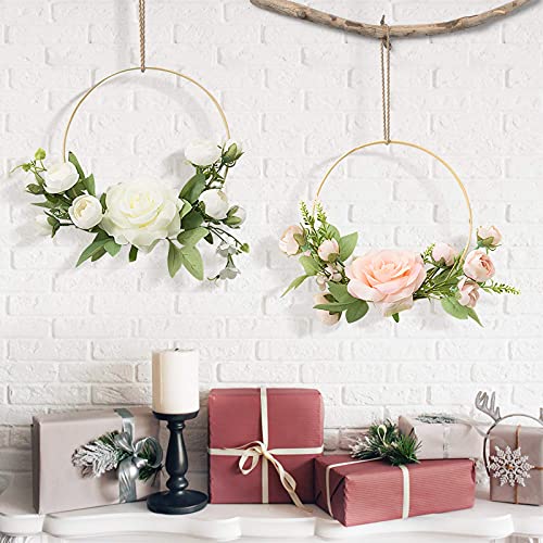 Ghirlande Floreali A Cerchio d'oro, Appeso A Parete Fiore Artificiale Cornice Rotonda Ghirlanda di Rose Rosa per Decorazioni Floreali Fai da Te Artigianato Decorazioni di Nozze (Bianca)