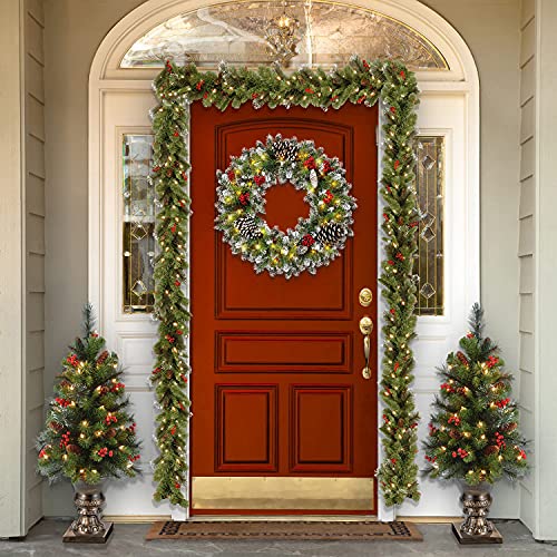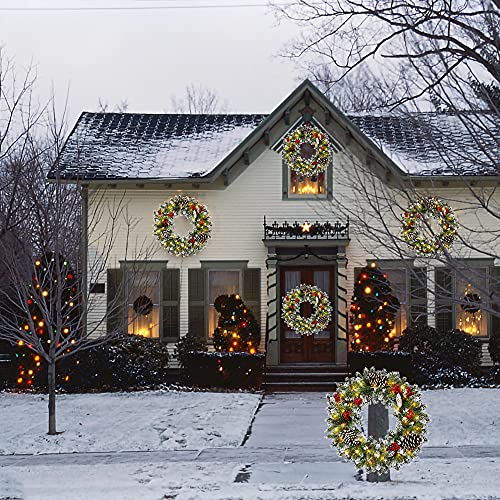 Ghirlande Natale per Porta per Decorazione Front Door, Artificiale Preacceso Ghirlande Natalizie 50 LED Luci Battery Operated-Fiocco di Neve Pinecone Bacca Rossa(60CM/24IN)