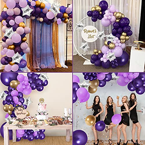 Kit di Ghirlande di Palloncini Viola da 110 Pezzi, Palloncini di Coriandoli Dorati in Lattice Palloncini Dorati Metallici Bianchi per Fidanzamento