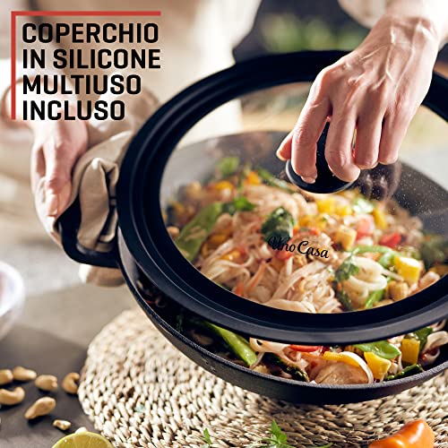 DOPPIO MANICO - Facile da tenere, spostare e usare per cucinare. Questa padella wok, grazie a due manici robusti ideali per sollevarla e ruotarla, è sempre pronta a tutto