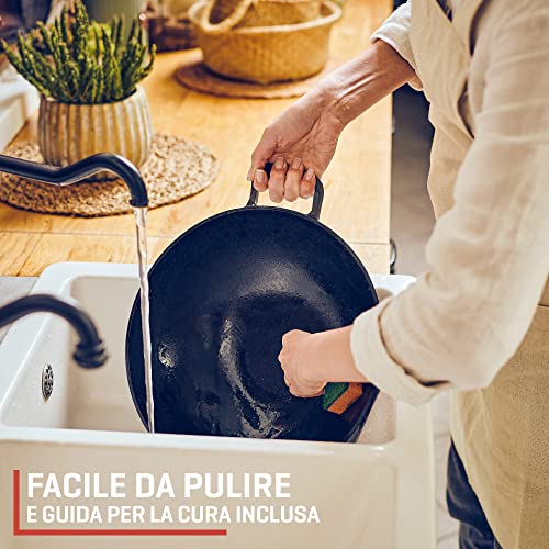 COMPATTA E LEGGERA - Non dovrai faticare per trasportare questa padella wok. Grazie alle dimensioni di 32 cm, questa padella occupa meno spazio ed è molto più leggera e facile da trasportare rispetto ai prodotti della concorrenza