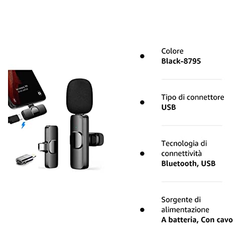 Compatibile con iPhone / Android / PC: Il microfono wireless lavalier è dotato di un ricevitore di tipo C, Tipo-C all'adattatore