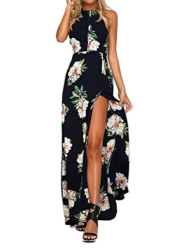 GHYUGR Donna Vestiti Lunghi da Spiaggia Vacanza Halterneck Senza Schienale Vestito Diviso Stampa Floreale Maxi Abito Sera