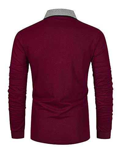 GHYUGR Elegante Polo Uomo Manica Lunga Cotone Cuciture Classica Commerciale Maglietta per L'Ufficio T Shirt,A-Rosso,3XL