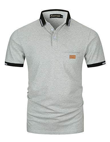 GHYUGR Polo Uomo Manica Corta Scollatura Cuciture a Contrasto Basic Poloshirt Camicie Tennis T-Shirts Tops,Grigio Chiaro,XL