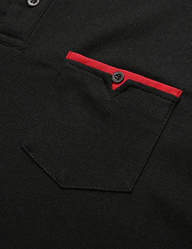 GHYUGR Polo Uomo Manica Corta con Tasche Vere Camicia Casuale Basic Golf Tennis Tshirt Cotone Magliette,Nero,XL